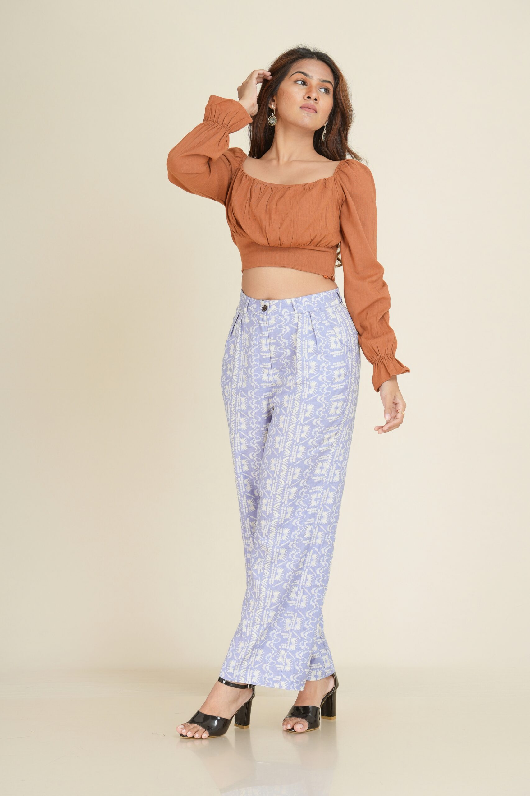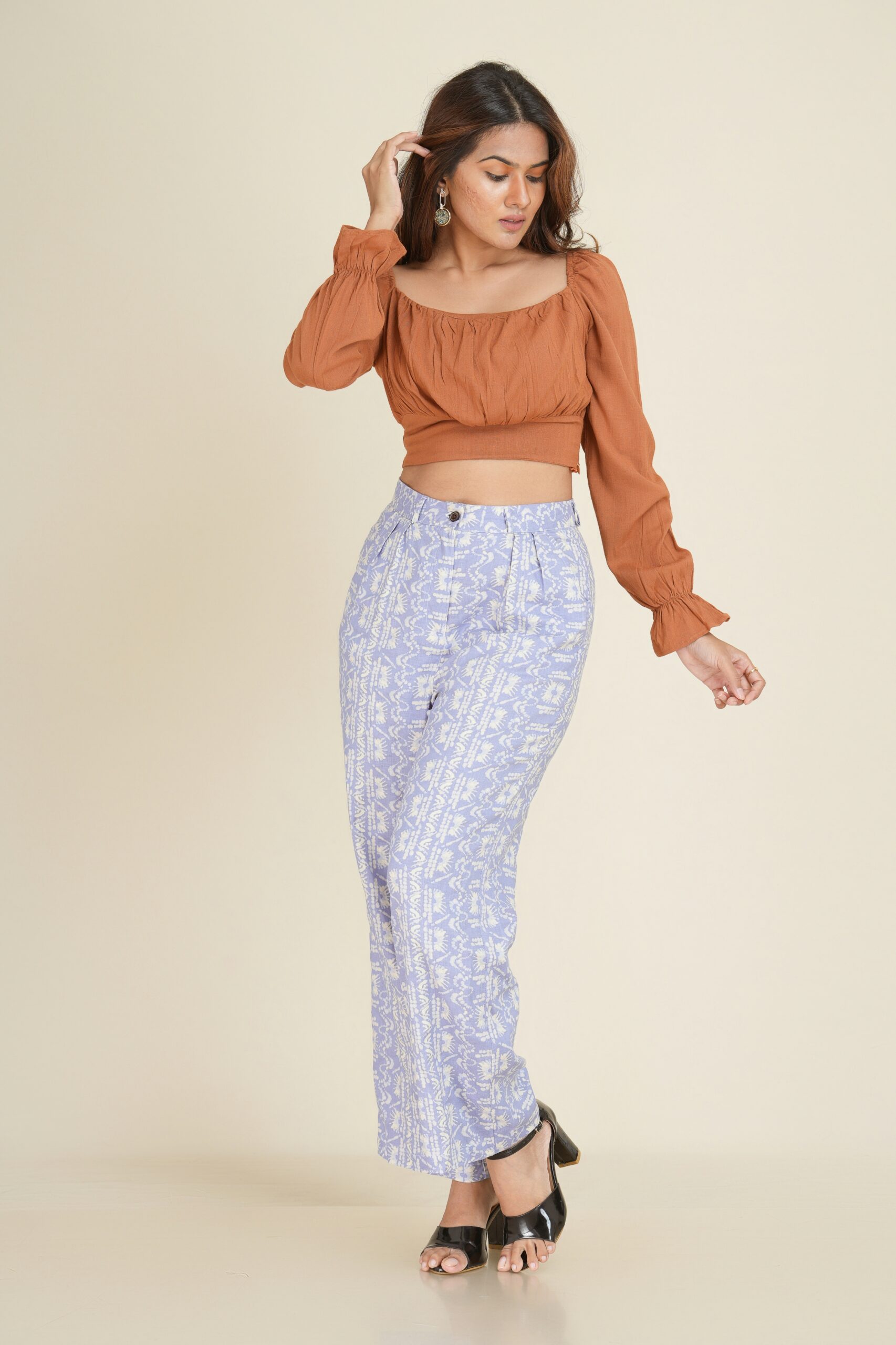 #camilatop #squareneckline #ruchedbust #croptopstyle #longsleevetop #femininefit #AARADstyle